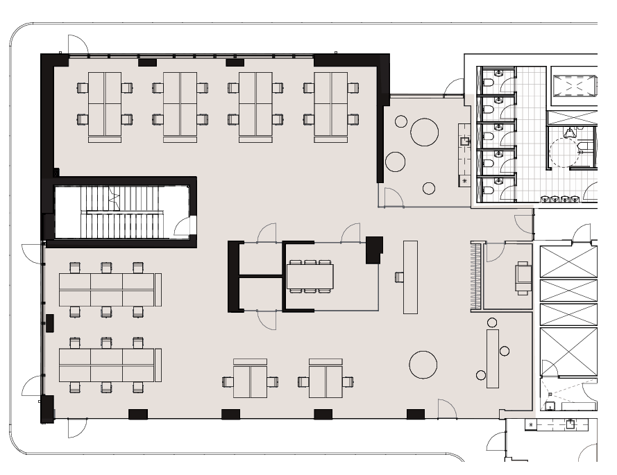 The premises comprise a large, bright, open office area, offering excellent opportunities for efficient workspace layout and team zones. In addition, there are six smaller rooms, perfect as meeting rooms, quiet rooms, or private offices. The premises also include a private kitchen, while shared toilets are located in the corridor.