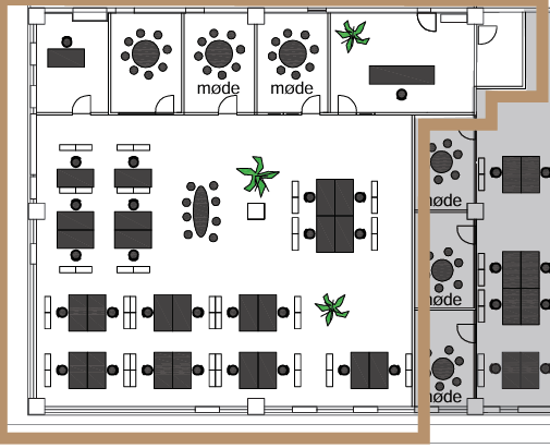 The premises comprise one large open-plan room as well as 6 smaller meeting rooms/quiet rooms/offices/printer room. The premises offer many possibilities for an exciting interior design.